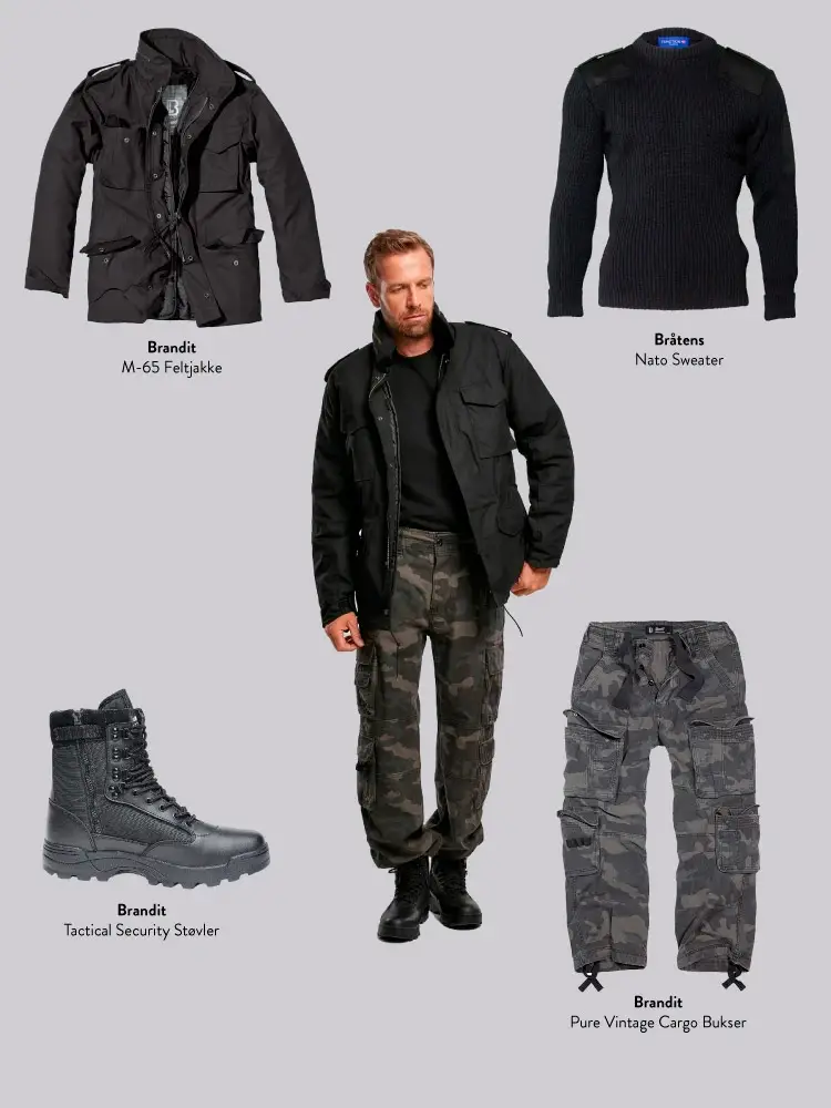 Er du klar til at tilføje nogle militærinspirerede klassikere til din garderobe? Brandit M65 Feltjakke kombinerer tidløs stil med funktionalitet, mens Brandit Tactical Security Støvler tilbyder robusthed og komfort. Suppler looket med Brandit Pure Vintage Cargobukser for et trendy og praktisk touch, og hold dig varm med Bråtens Nato Sweater i merinould. Læs videre og opdag, hvordan du kan skabe det perfekte outfit til enhver lejlighed.